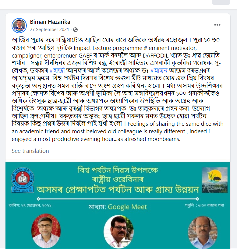 - Prof Mohd Tarique delivered Lecture on National Income and Issues View